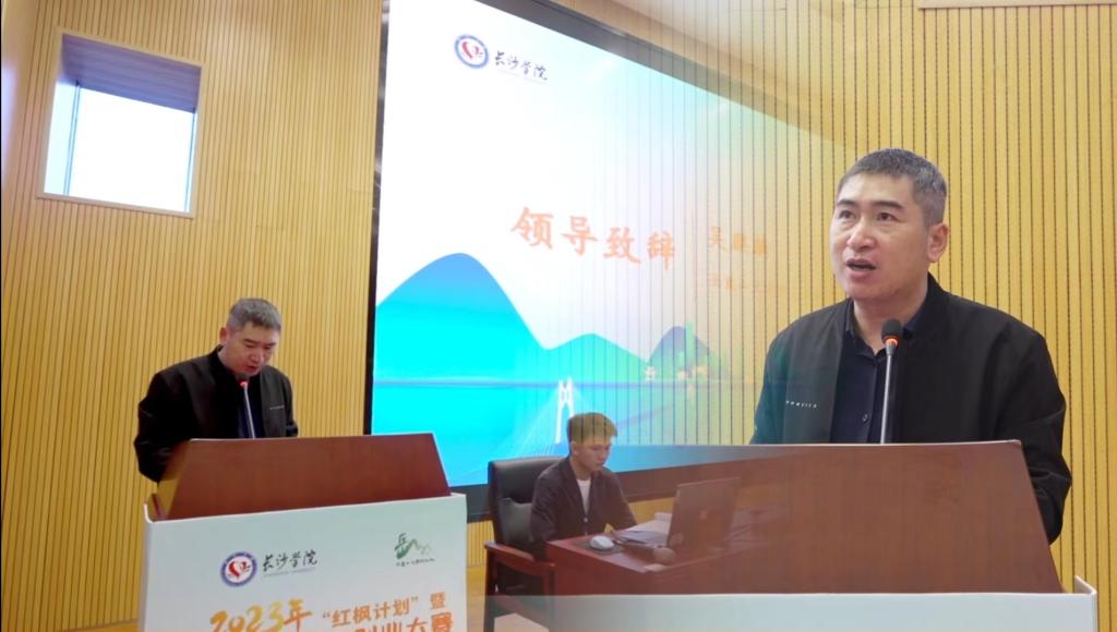 为助力湖南省委“三高四新”战略,推动全省高校院所科技成果转化,湖南湘江新区管理委员会和长沙学院联合主办,岳麓山大学科技城管理委员会和长沙学院创新创业学院共同承办了2023年“红枫计划”暨“麓山杯”创新创业大赛复赛·长沙学院专场。大赛于11月10日在长沙学院图书馆举行,大科城管委会科技金融部部长吴麒麟和教务处处长、创新创业学院院长刘臻出席并致辞。