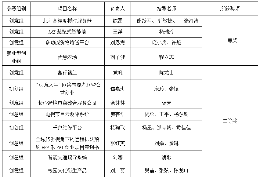 近日,中国第三届“互联网+”大学生创新创业大赛长沙学院校内赛圆满结束。经过预赛、半决赛、决赛,“北斗高精度授时服务器”等4个项目获一等奖,“湘行锡兰”等8个项目获二等奖,“互联网+动漫产业”等29个项目获三等奖,“最强大学声”等4个项目获优胜奖。